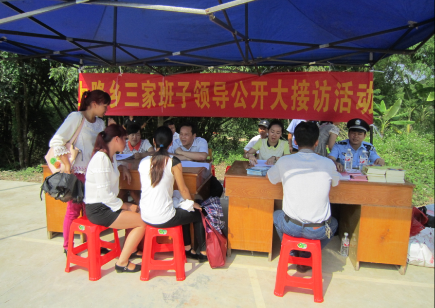 5月27日,上降乡三家班子领导联合派出所、司法所、乡计生所和乡综治办在江村村板章屯文化活动中心开展了一次公开大接访活动。